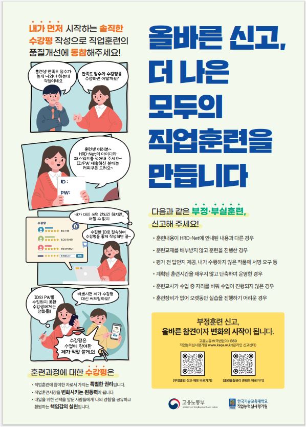 직업능력심사평가원 부정훈련관리센터의 2024년 2분기 부정훈련 예방 포스터 공유드립니다.